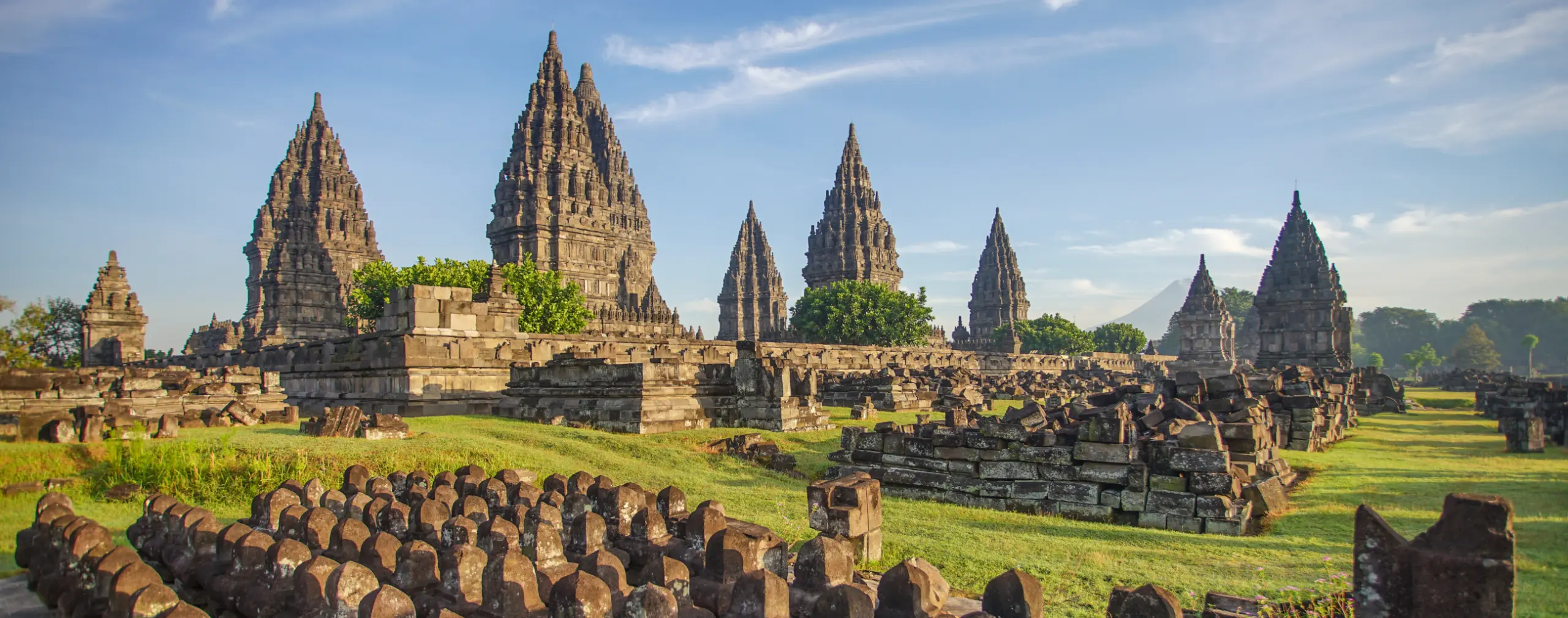 The Prambanan courtyard is filled with a bright and lively atmosphere. From here, the towering temples create striking silhouettes, offering plenty of space to take a leisurely walk, explore the architectural details, and enjoy wide open views of the complex.